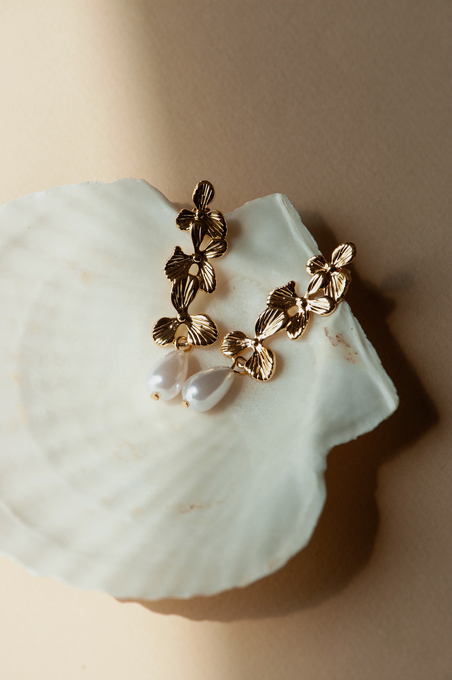 Boucles d’oreilles en acier inoxydable avec perle. ✨