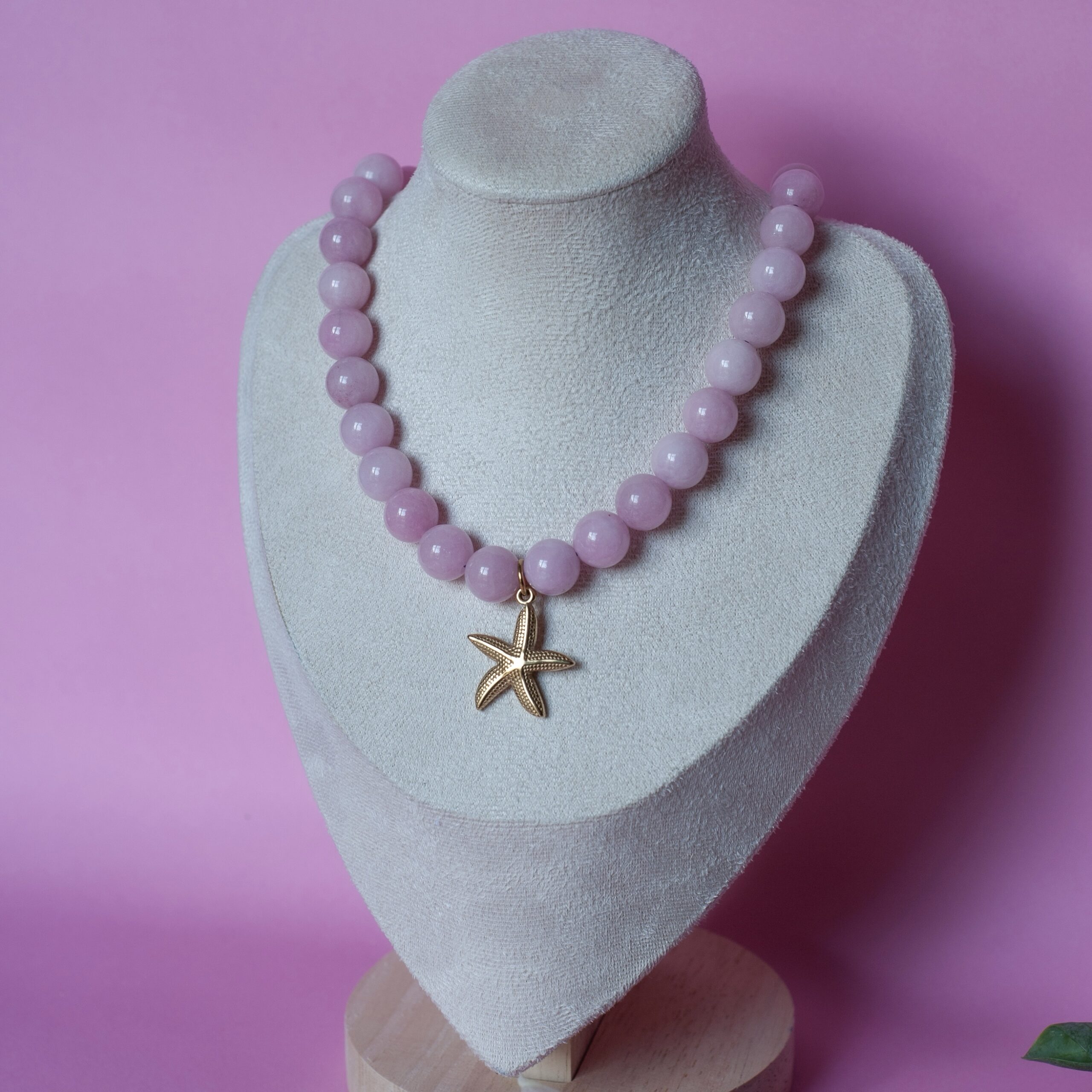 Collier en perles rose pâle avec breloque en acier inoxydable. Il est possible de retirer la breloque si elle ne vous plaît pas ou de la remplacer par une autre (si modification, veuillez l’indiquer en note de commande, au moment du paiement).