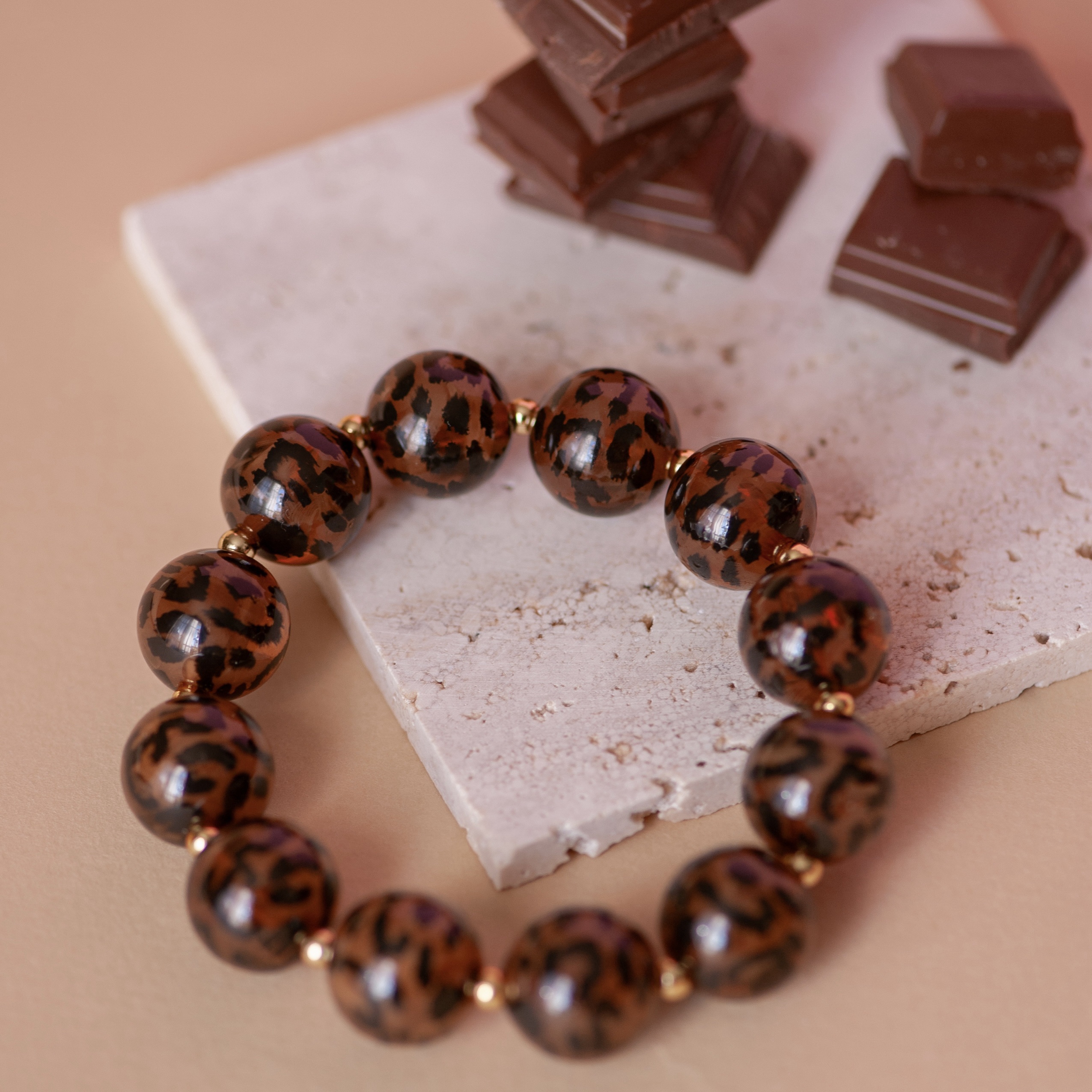 Jonc en acrylique avec motifs léopards, modèle très tendance.